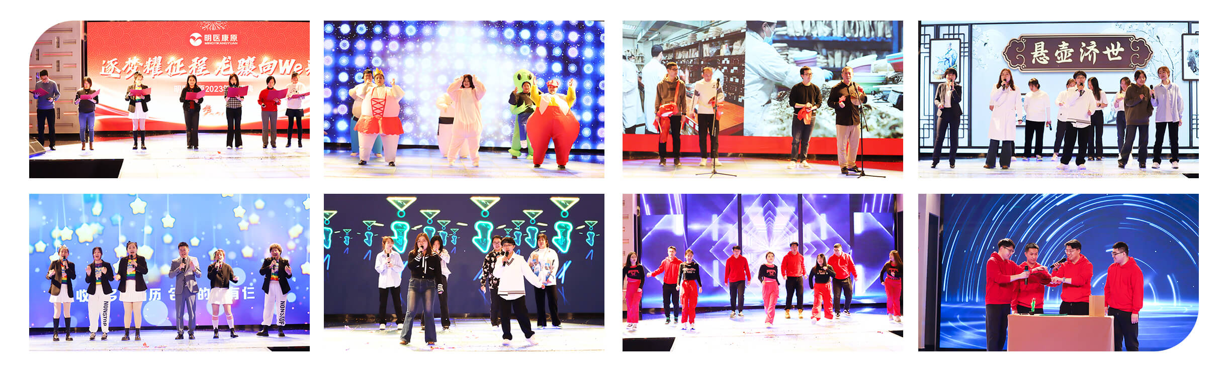 1月21日,明医康原集团年度联欢会以“逐梦耀征程 龙骧向未来”为主题举办年度联欢会。集团内部才华横溢的同事们共呈现了19场精彩纷呈的节目。从充满活力的舞蹈、激昂的诗朗诵,到诙谐幽默的小品和鼓舞人心的歌曲演唱,每个环节都展现了明医人的才智与风采。